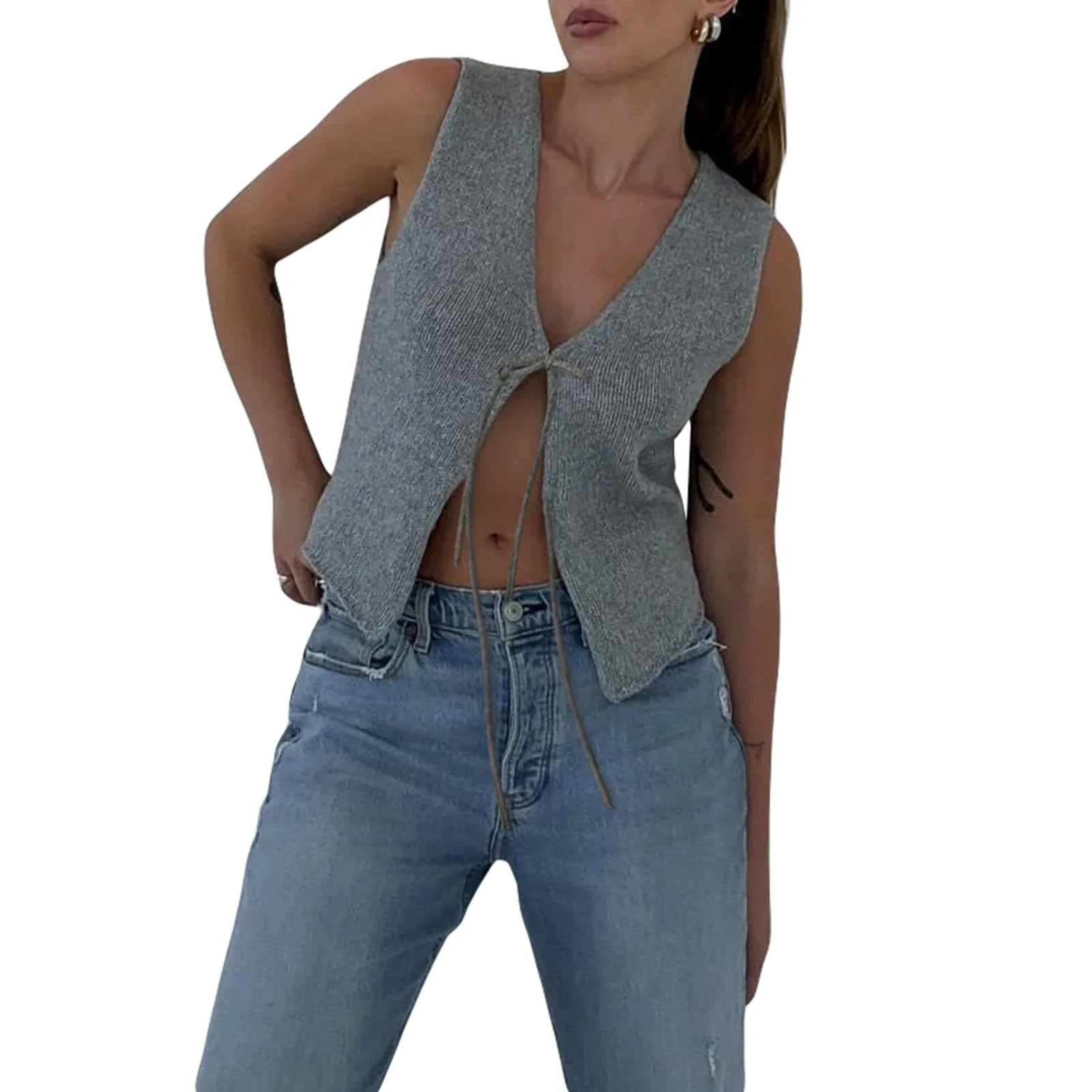 Chic & Versatile Knit Vest – Sleek V-Neck Tie-Up Tank