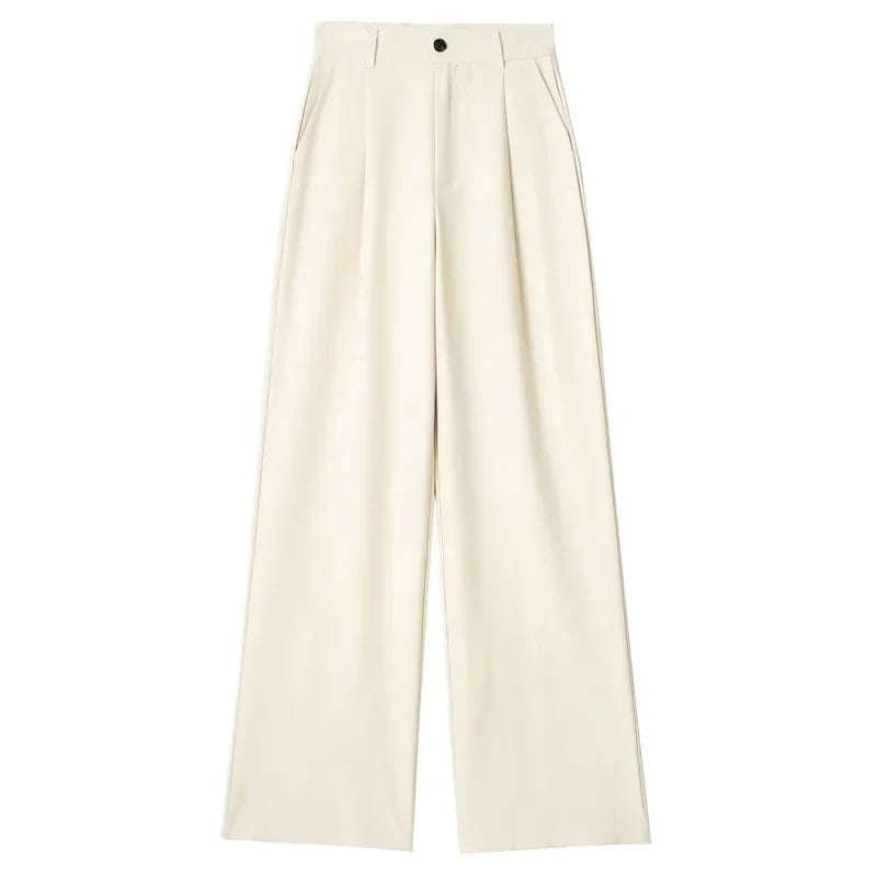 Step into elevated style with these wide-leg trousers designed to flatter and flow. The high waist highlights your shape, while the relaxed cut creates a long, clean line that moves with ease. Finished with subtle stripes for a refined edge, these trousers strike the perfect balance between polished and effortless.