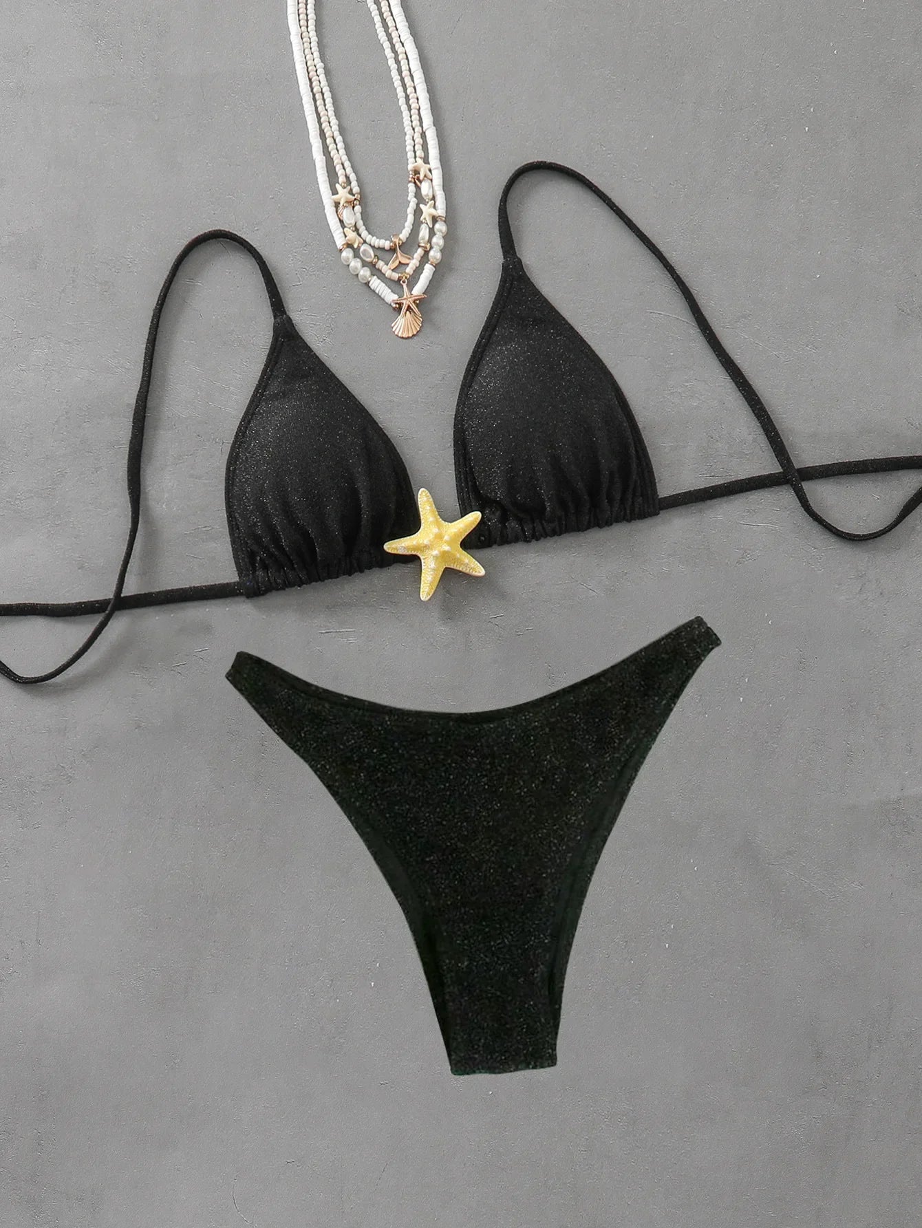 Embrace the carefree spirit of the beach with this stunning bikini, where playful details and elegant design come together in perfect harmony. Crafted to highlight your natural shape, this flattering piece brings out your best features with a fit that feels both effortless and refined. The striking starfish embellishment adds a bold, ocean-inspired accent that captures the joy of coastal living. Whether you’re walking along the shoreline, lounging by the pool, or simply soaking up the vibe, this bikini offers a seamless blend of style, freedom, and comfort—designed to move with you and let your personality shine.
