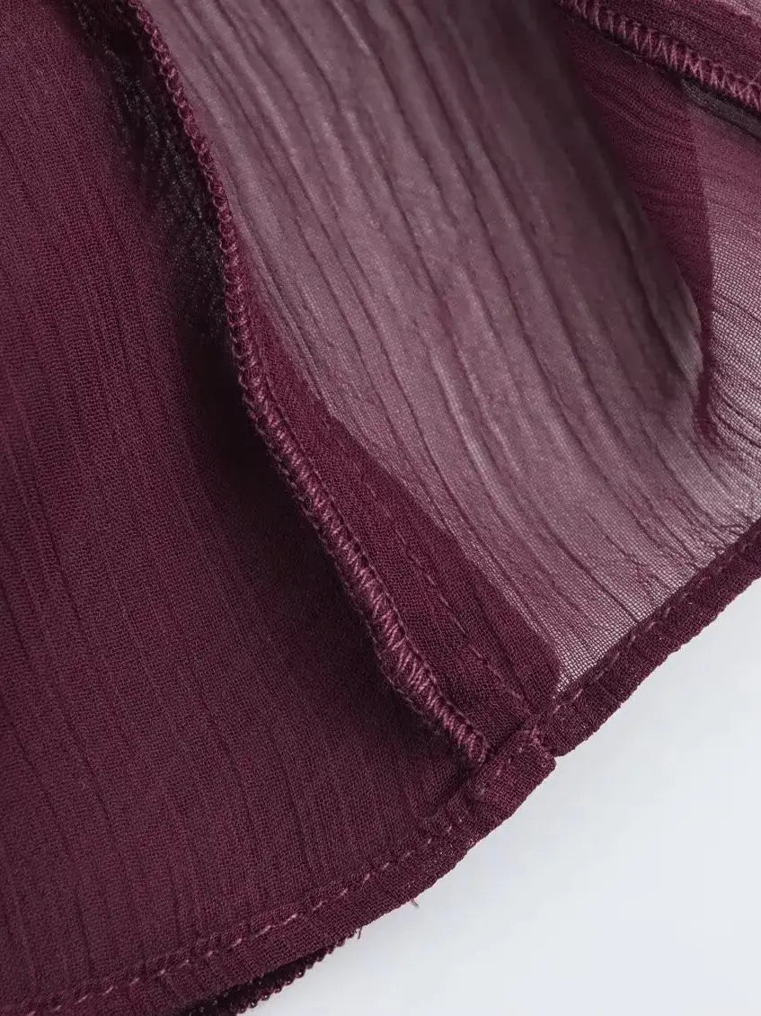 This elegant blouse adds just the right touch of softness and confidence to your look. With a flattering V-neck and delicate layered ruffles, it brings graceful movement and modern charm. The subtle sheer finish keeps it light and polished—perfect for any occasion.