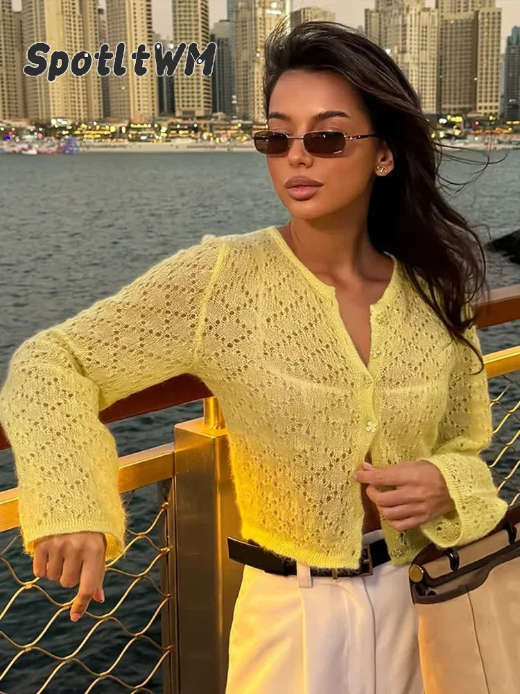 This cropped blouse blends refined edge with subtle charm, thanks to its sleek cutout details and flattering fit. With long sleeves and just the right amount of flair, it’s a go-to piece when you want to feel confident, comfortable, and effortlessly stylish.